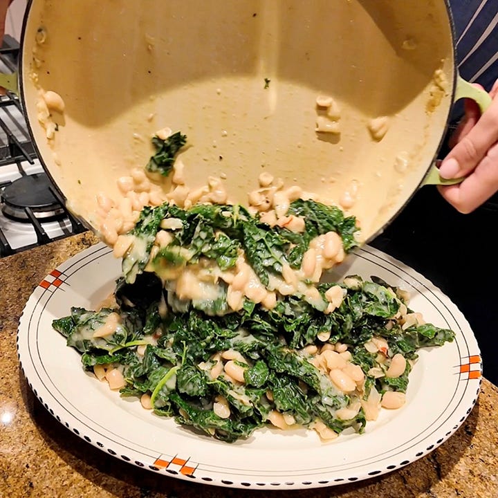 It’s all about the prep. Believe it or not, you can actually cook the beans the morning of, or even the night before, and simply bring them back to life with a splash of stock or water before your guests arrive. The kale only needs a minute to wilt in the residual heat.